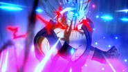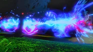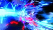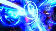 If the user moves the control stick up while inputting the command for the move, they'll rush forward with a stun kick that, if successfully hit, automatically locks the opponent in a unvanishable cutscene. The blast will deal a total of 50% damage.