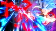 User puts two fingers to their head, their hair flaring up (Gohan Beast only) as they charge it up for a time, then finally, releasing it as a massive unblockable beam. At the end, if the user has charged the attack past Stage 1, their expression falls. This move can be charged up to Stage 3 and deals more damage the closer you are to the opponent, and the less health you have.